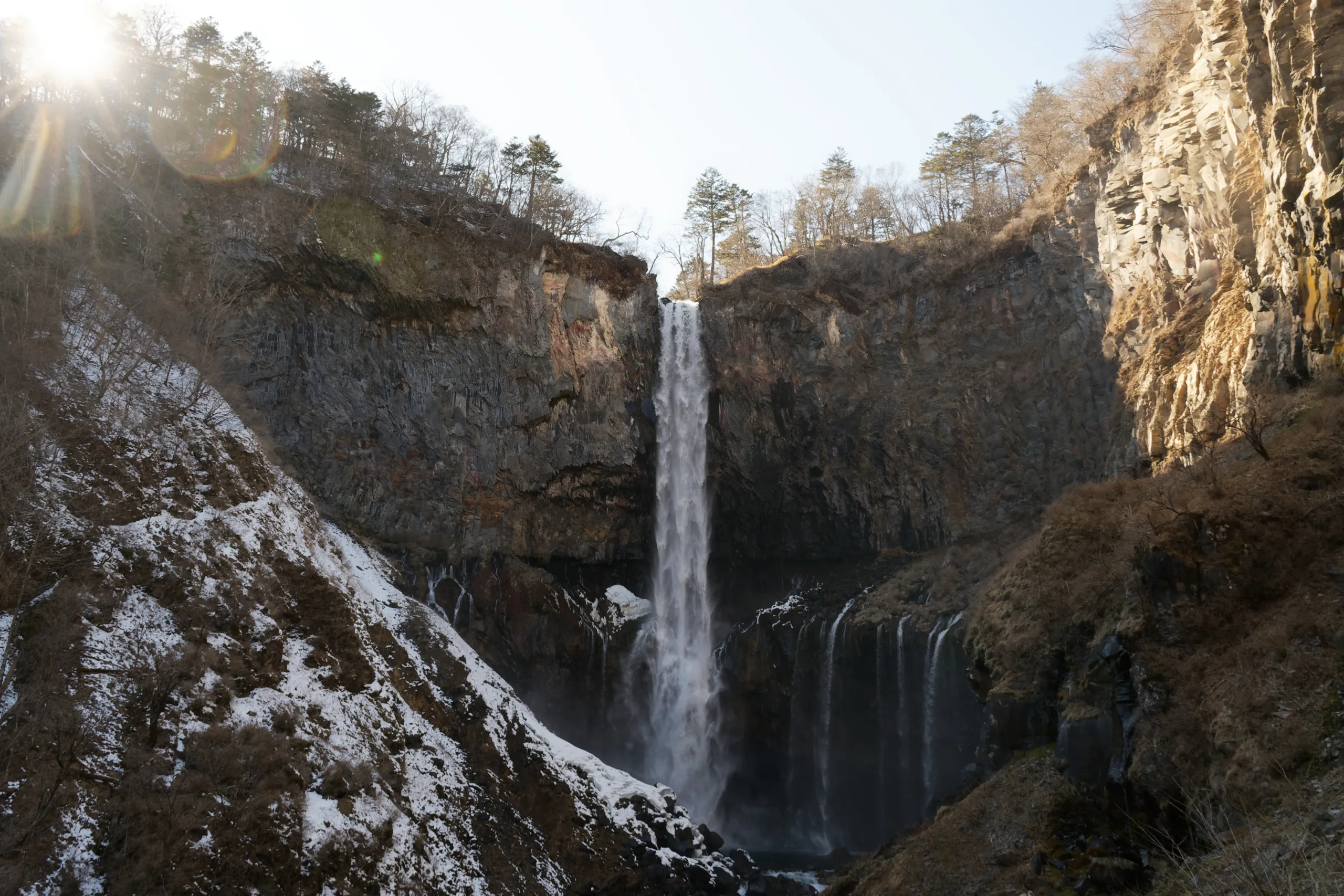 On quitte la région de Tokyo ! Première destination, les chutes Kegon et Nikko, à quelques heures de train de la capitale. Nous arrivons à la mi-journée et découvrons une ville touristique, mais un peu déserte à cette période. Après un rapide déjeuner, direction la cascade Kegon (worldwide famous, c’est le panneau qui le dit !) et descendons au pied de cette chute d’eau haute de 97 mètres (l’une des trois plus élevées du Japon). Nous poursuivons ensuite la promenade dans le village près de la cascade. C’est un lieu de villégiature mais là encore, il y a peu de monde. Nous apercevons le Mont Nantai, un volcan endormi depuis 7 000 ans. C’est également une montagne sacrée et un lieu de pèlerinage pour les bouddhistes et les shintoïstes.