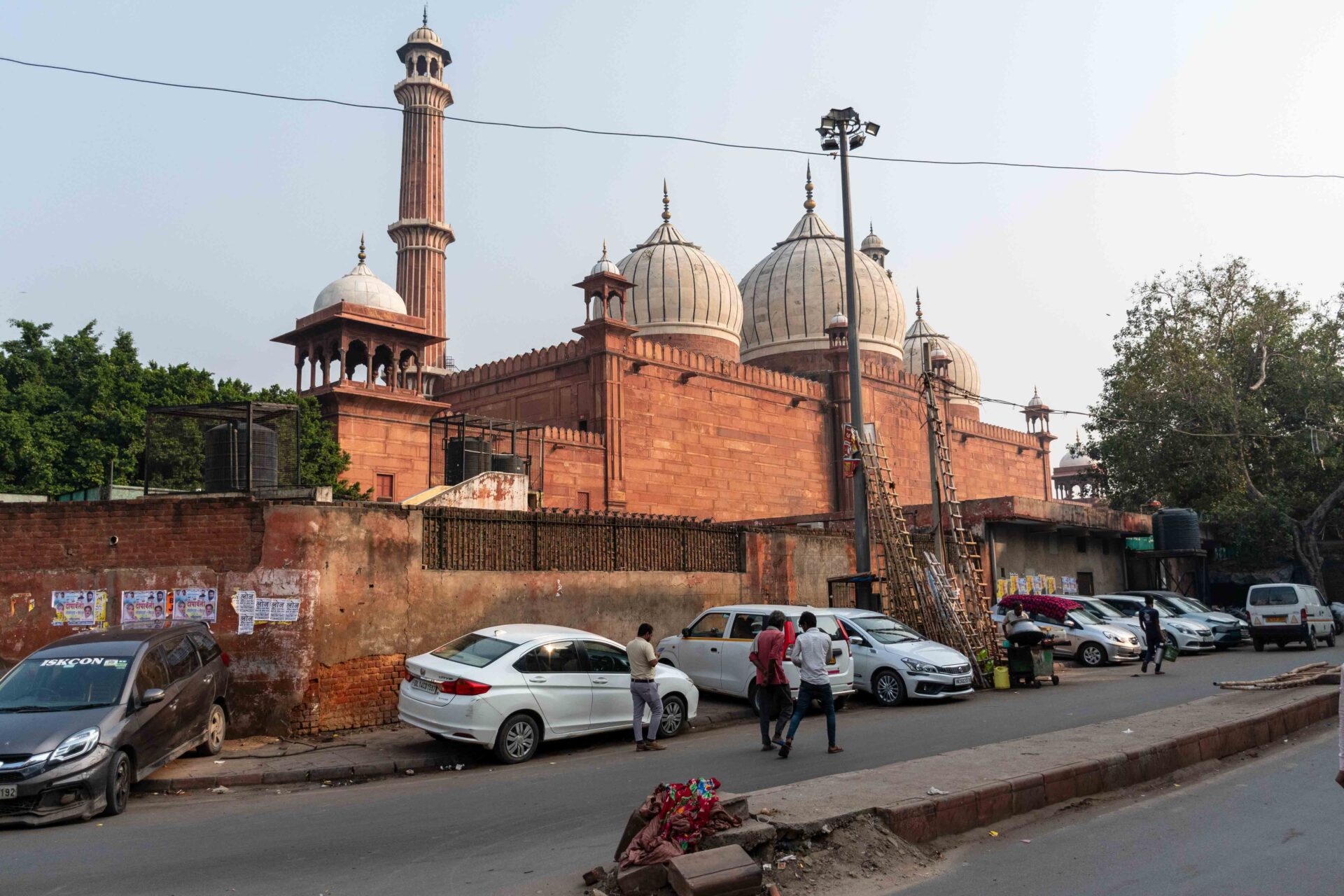 C’est bon, je peux profiter du marché aux épices…! Sauf que non : c’est pour eux un jour férié et toutes les échoppes sont fermées. Quand ça ne veut pas, ça ne veut pas ! Je poursuis ma visite du quartier par un temple Hindou. On me laisse entrer gratuitement, mais un homme me passe ni une ni deux, un collier de fleurs autour du coup et me fait le tilak, fameux point coloré… Avant de me demander des sous… Et qu’un deuxième homme recommence la même opération, toujours facturée. Un peu agacé par ces pratiques, j’écourte ma visite et prend la direction de la mosquée Jama Masjid !