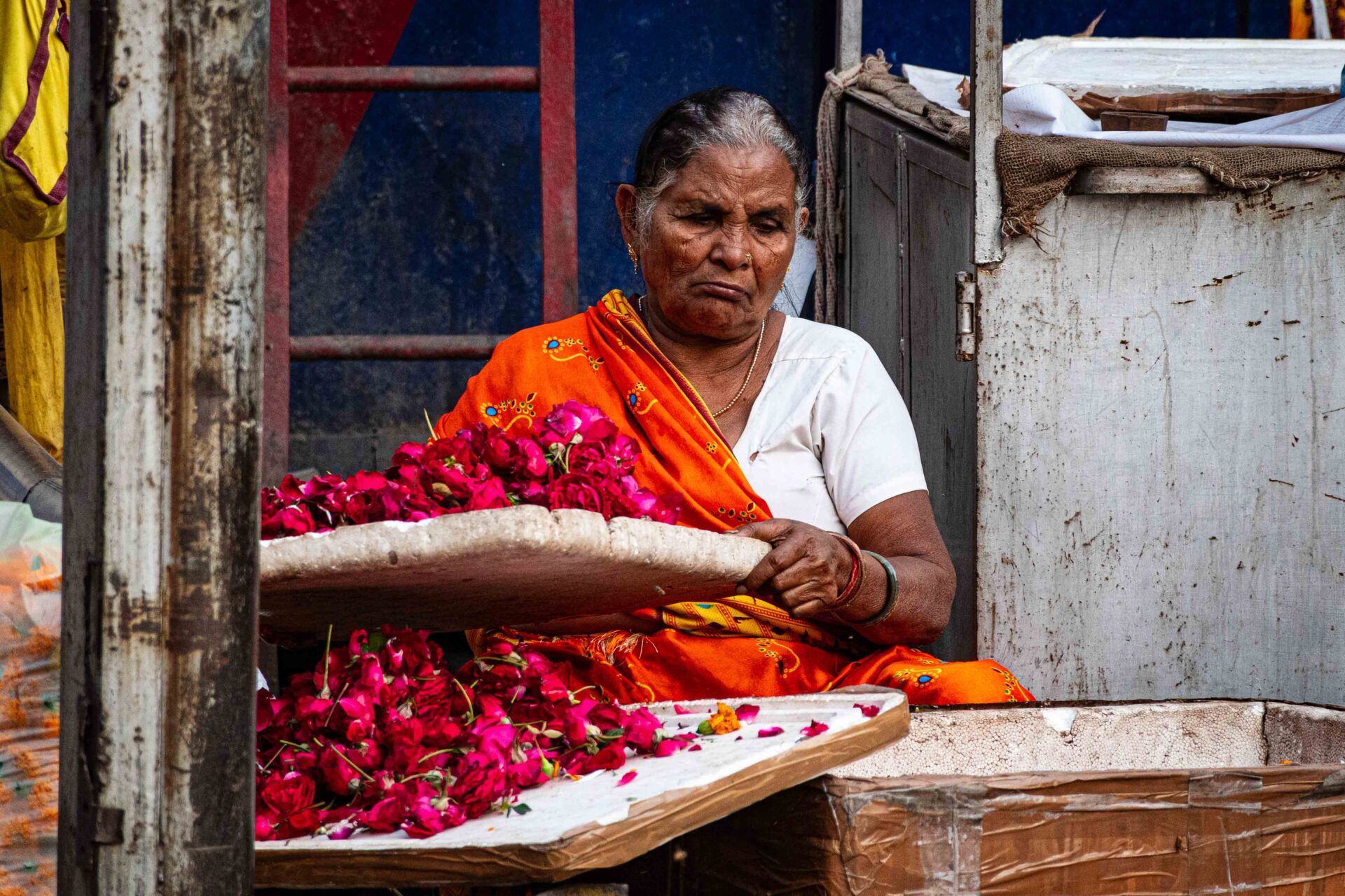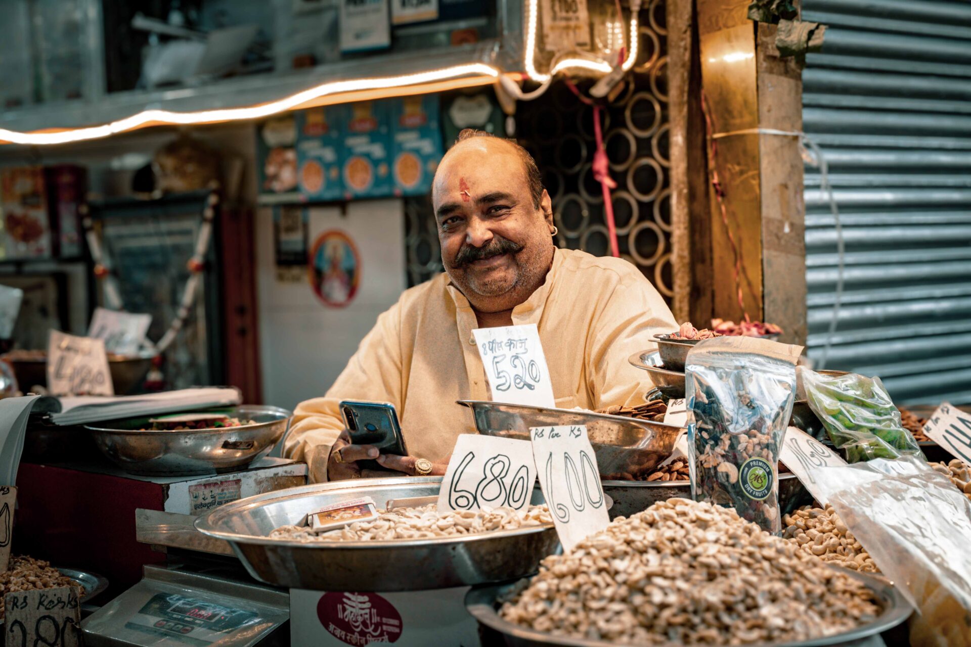 J’essaie ensuite de rejoindre la partie épices du marché. Je suis le chemin sur Google Maps mais j’atterris en plein quartier des livres. Je finis par accepter de me faire guider en rickshaw, mais le conducteur me ramène… Au point de départ ! Deuxième tentative avec un autre chauffeur, qui m’amène au bon endroit, mais exige finalement plus que la somme négociée initialement. Une petite foule d’indiens se forme autour de nous : je ne comprends rien ! Mon salut proviendra finalement d’une personne parlant un peu mieux anglais. Je m’en sors en payant plus que le prix négocié, mais moins que la somme demandée en fin de course.