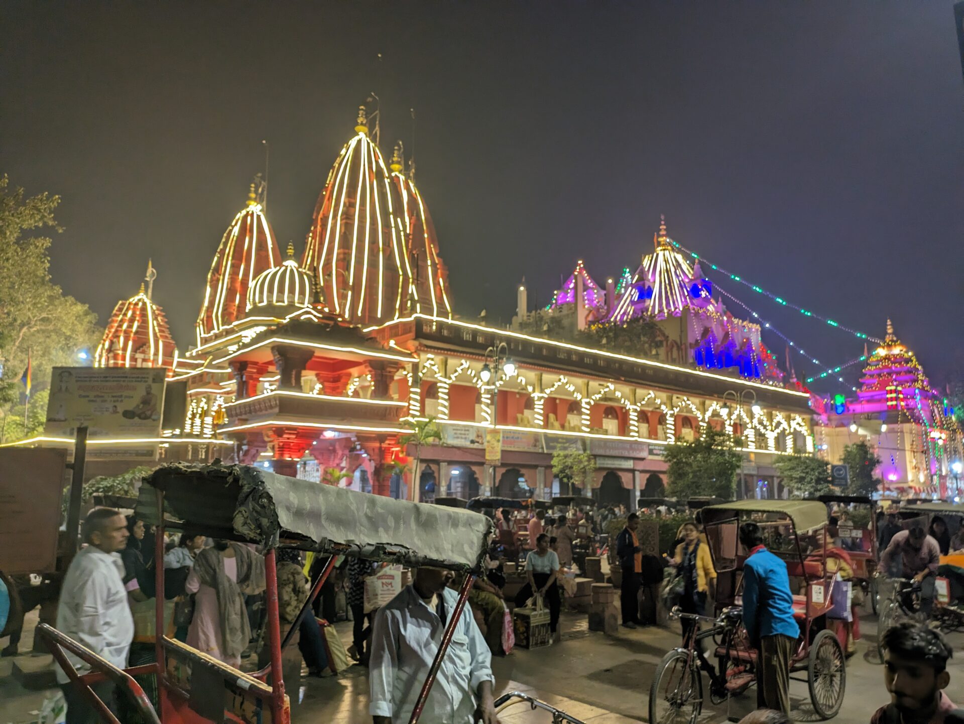 Pour des raisons religieuses et de respect de ce lieu sacré me direz-vous ? J’ai plus le sentiment que la raison est mercantile. Le temple est absolument magnifique, et il est à voir si vous êtes de passage à Dehli. l’intérieur est tout en marbre, l’extérieur en pierres rouges sculptées, c’est sublime et à peine croyable. En revanche, l’atmosphère donne une impression de Disneyland de la religion : on y vend des popcorns, on peut payer pour assister à une projection iMax ou un son et lumière sur une fontaine. La boutique de souvenirs rendrait jaloux Mickey et pour 2€50 on repart avec son portrait encadré devant le temple (évidemment, je l’ai fait !). Bref, je ressors de là un peu circonspect (et sans photo ni vidéo !).