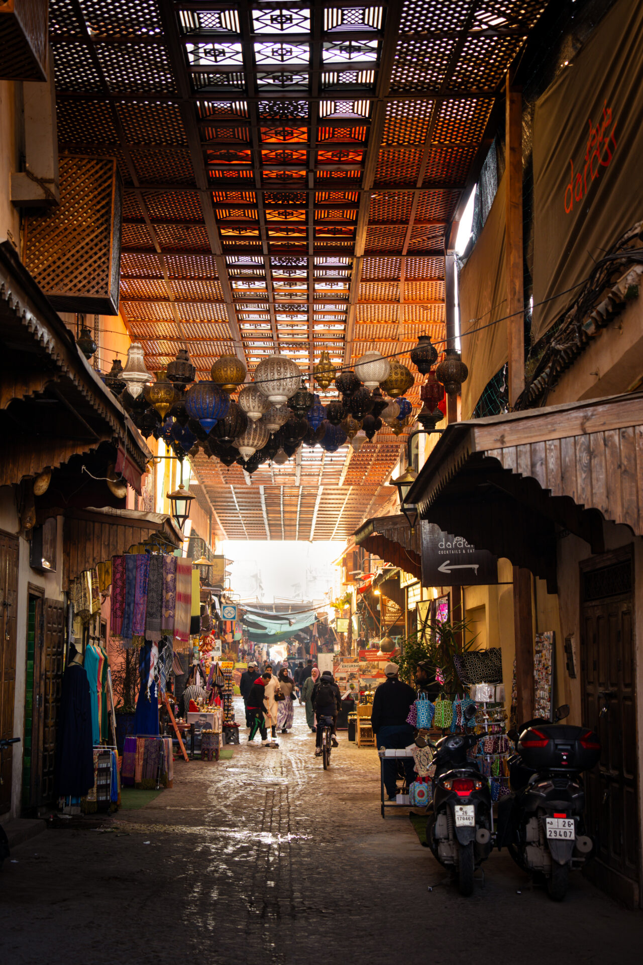 À 17 heures, j’ai réservé une surprise à Anaïs : deux heures dans un hammam avec massage chez Alphaïs, une parenthèse de calme bienvenue après l’agitation de la journée. Pendant ce temps, je repars seul, sans itinéraire précis. Je me perds volontairement dans les petites ruelles moins fréquentées, loin des axes touristiques, observe la vie qui s’écoule plus lentement et m’arrête régulièrement pour prendre des photos. Une manière de découvrir la ville autrement, au hasard des rencontres et des lumières de fin d’après-midi.